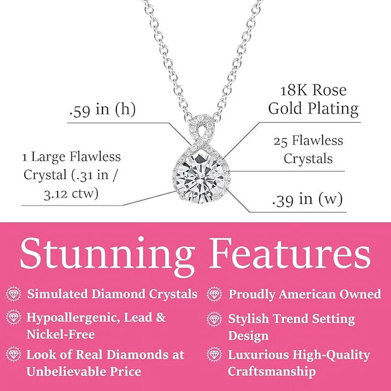 Cate & Chloe Alessandra 18k White Gold Plated Halo Infinity Necklace with Simulated Diamond Crystals. Enhance your personal style with the Alessandra Necklace, a truly remarkable piece that exudes grace and sophistication. This exceptional necklace embodies opulence and is meticulously crafted for the contemporary woman who values exquisite artistry and timeless beauty. The stunning brilliance of the simulated diamond crystals mirrors the captivating allure of genuine diamonds, making it an impeccable addition to any attire, whether casual or formal. Elevate your style with the allure of Alessandra, capturing feminine elegance and modern flair. STUNNING DETAILS