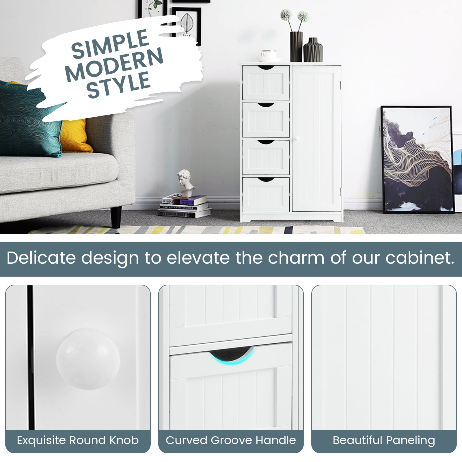 Costway Bathroom Storage Wooden 4 Drawer Cabinet Cupboard 2 Shelves Free Standing White