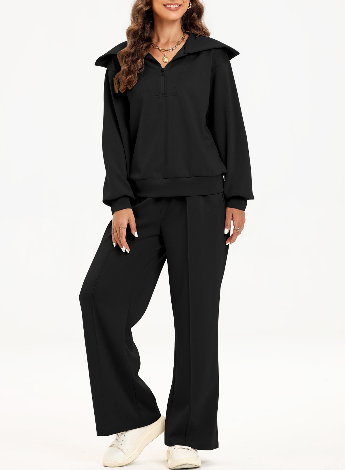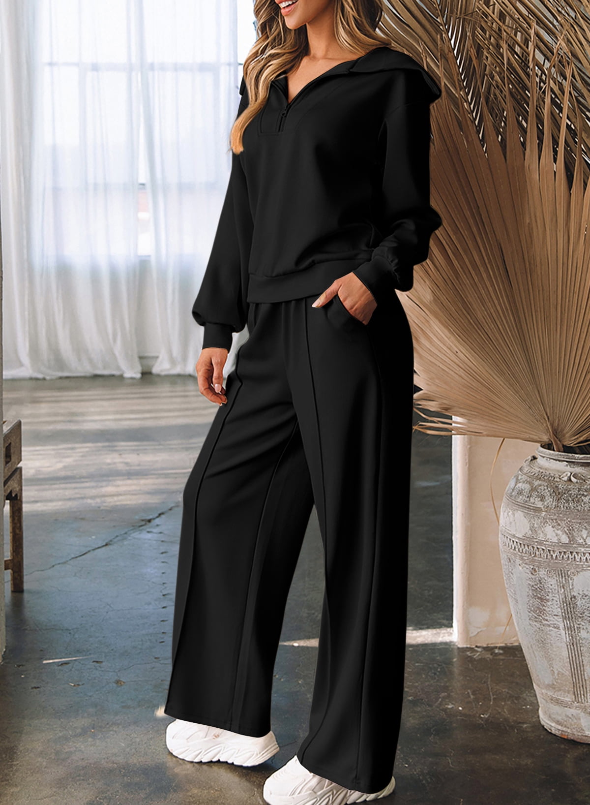 DOKOTOO Womens 2 Piece Outfits Sets Oversized Fleece Sweatsuit Half Zip Sweatshirt Matching Set Wide Leg Sweatpants Tracksuits Lounge Sets for Women