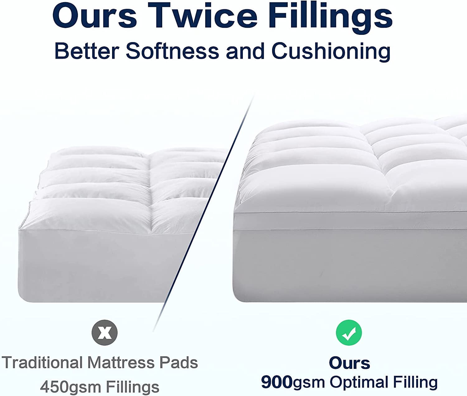 EMONIA Queen size mattress topper Enjoy 5 star hotels sleep. mattress toppers are twice Extra Thick that of the traditional mattress pads. EMONIA have microfiber shell and ultra soft 1100g down alternative fill, Our bed topper is incredibly soft smooth, Ultimate fluffiness. Mattresses topper made of Premium 400TC Breathable Soft Down, EMONIA queen stress topper has a supportive and stress relieving effect. Provide greater support for your head, shoulders, back, hips, and legs to alleviate pain. It can treat back pain. This cooling mattress topper mattress pad can relieve fatigue and wake up refreshed in the morning.We design an ELASTIC DEEP POCKET(8-21in) for you,do not afraid of tossing and turning during the long night any more, as this smart design achieves 360 wrapping. Find a 24H protection from shifting for you. EMONIA Queen Mattress Topper, 400TC Extra Thick Mattress Pad Pillow top for Deep Sleep, Soft Mattress Protector with 8-21" Deep Pocket, Soft 7D Spiral Fiber Filling for Back Pain, Cooling Mattress Cover