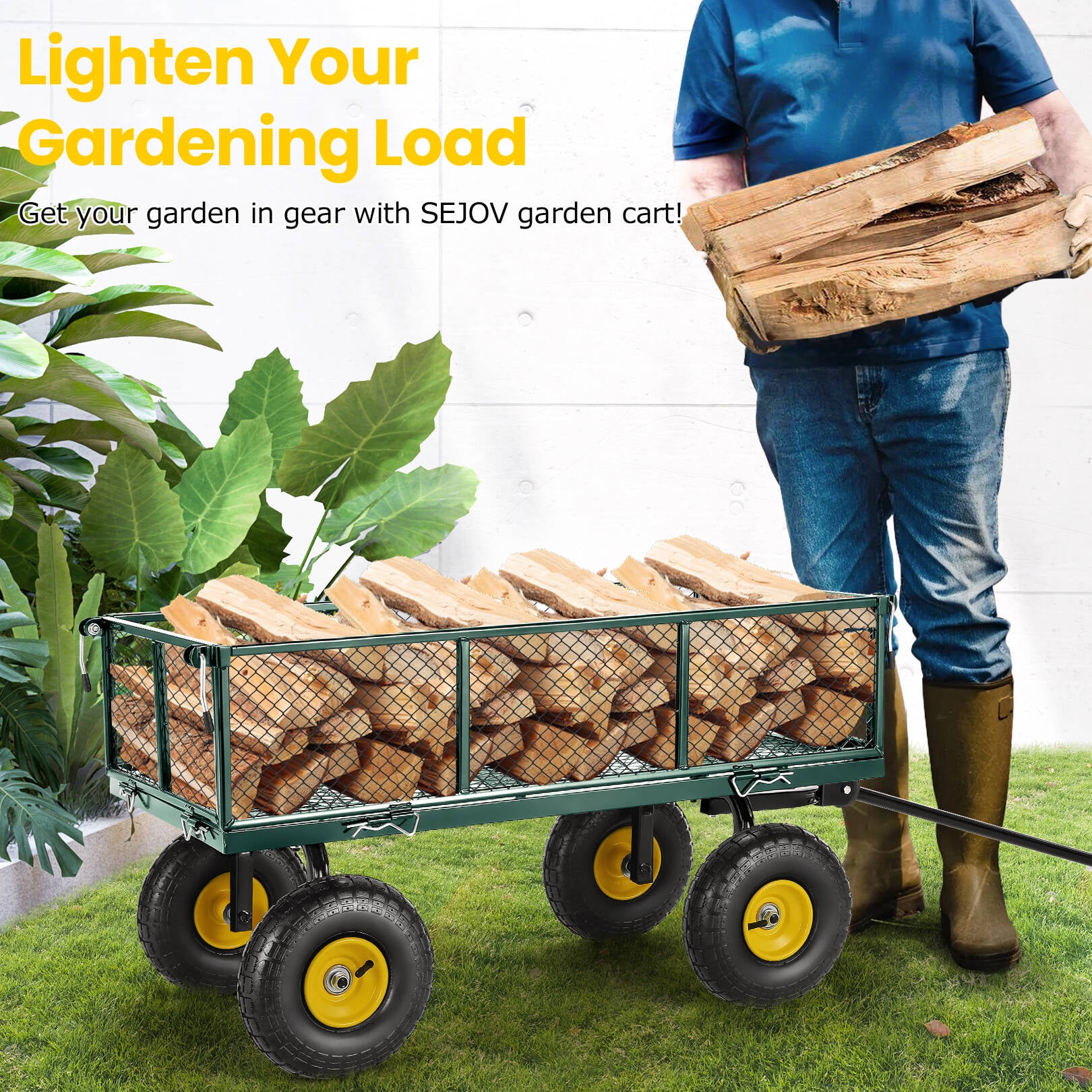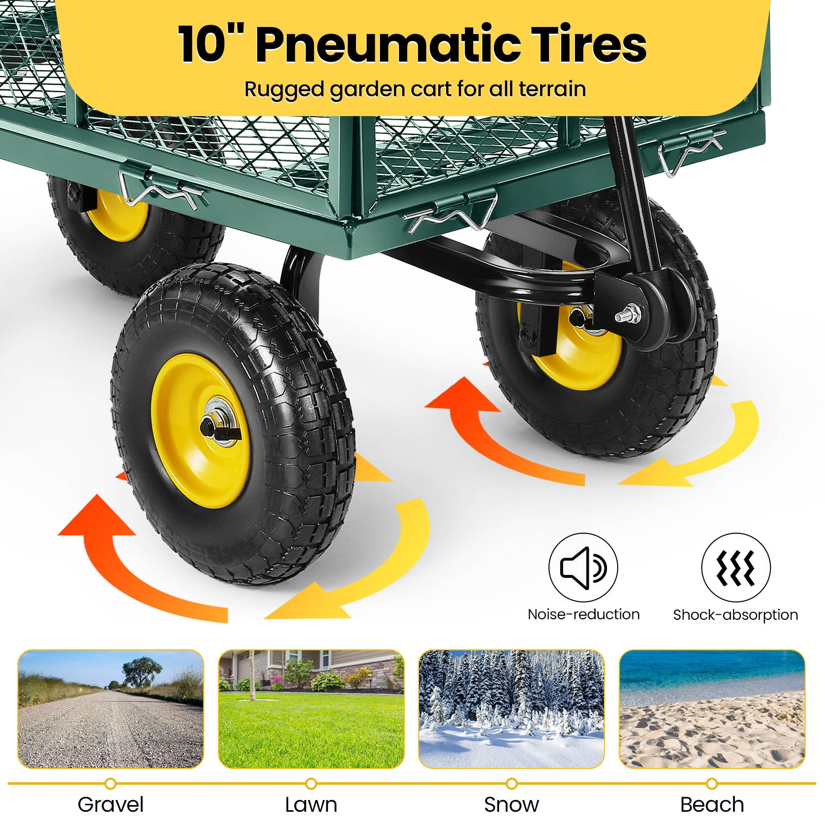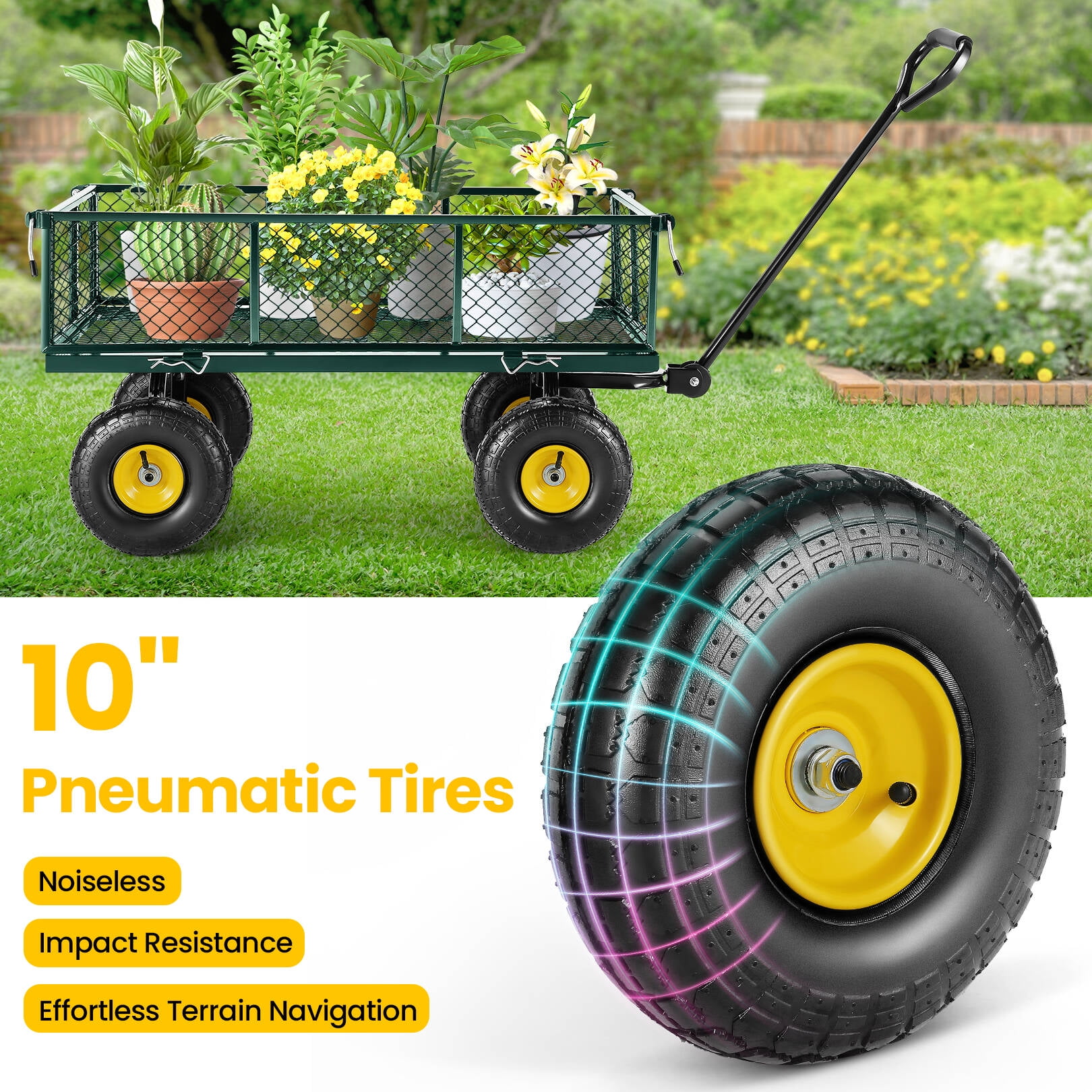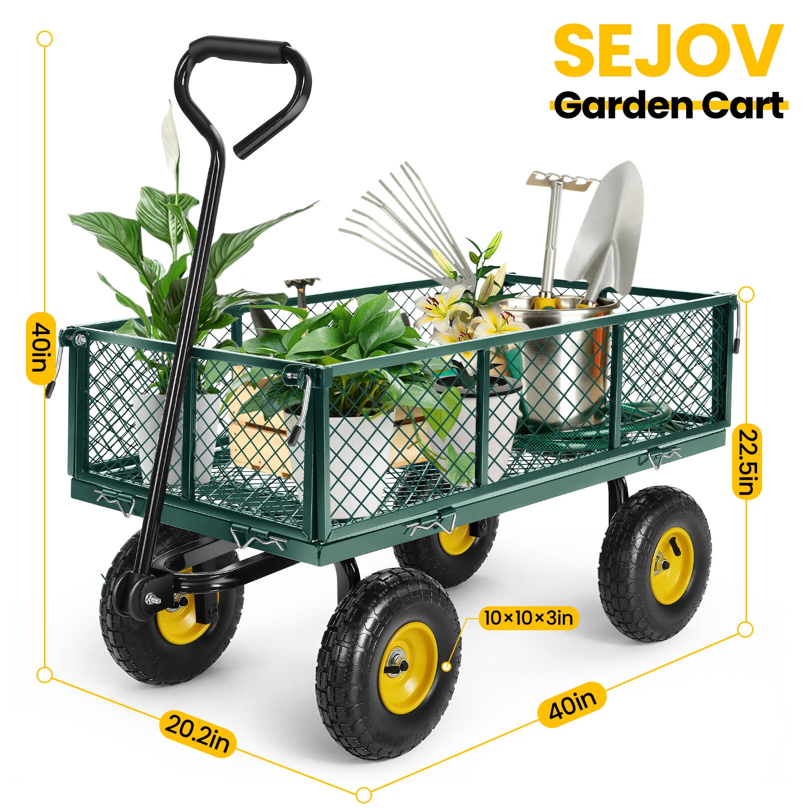 Funcid Steel Garden Cart with Removable Sides, Heavy Duty Yard Cart, 660 LBS Capacity Wagon, Rotating Handle, 10" Tires Wheels, Perfect for Garden Farm Yard, Green