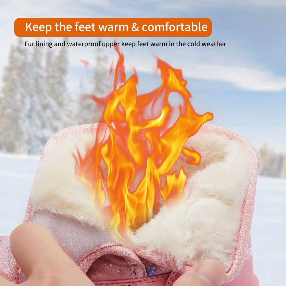 Are you looking for a warm and comfortable durable snow boots for your live lovely kids? This outdoor fashion warm snow boots will certainly satisfy you. "Beautiful boots, Cute Boots". Stitching design, convenient slip-on design, non-skid soles.Pretty dressy shoes for going out and parties. Suitable for winter snow days, very cute and beautiful, great for kids' everyday wear, keep the feet warm and comfortable all day long. Let you fondle admiringly. Let baby feet warm and soft in the winter. Let mom be assured.