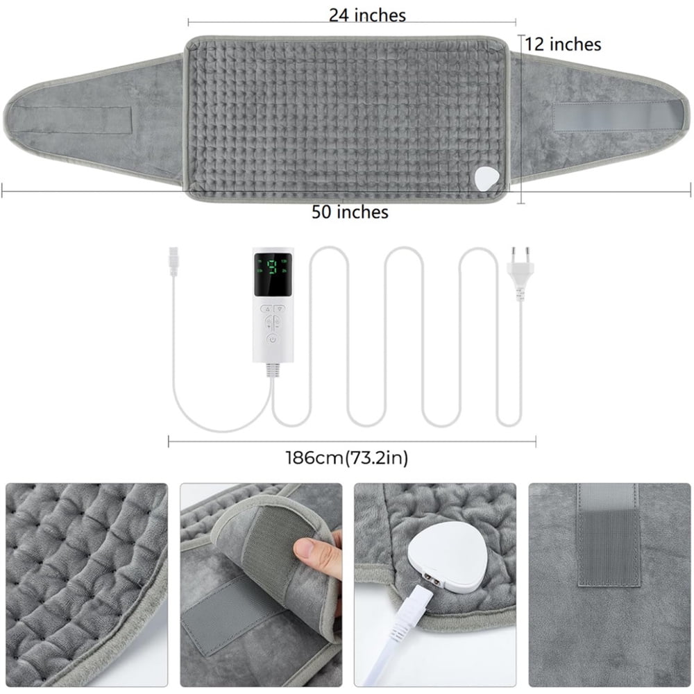 Extra long Heating pad for back pain relief delivers a stream of heat to the affected area, eases back pain, and unbearable cramps, and provides pleasant muscle relaxation.