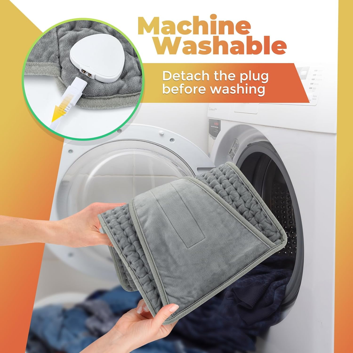 The gray heating pad for neck and shoulders is ultra-soft, giving that awesome cozy feeling, wherever you put them. Flexible micro plush adapts to your body shape for maximum effect.