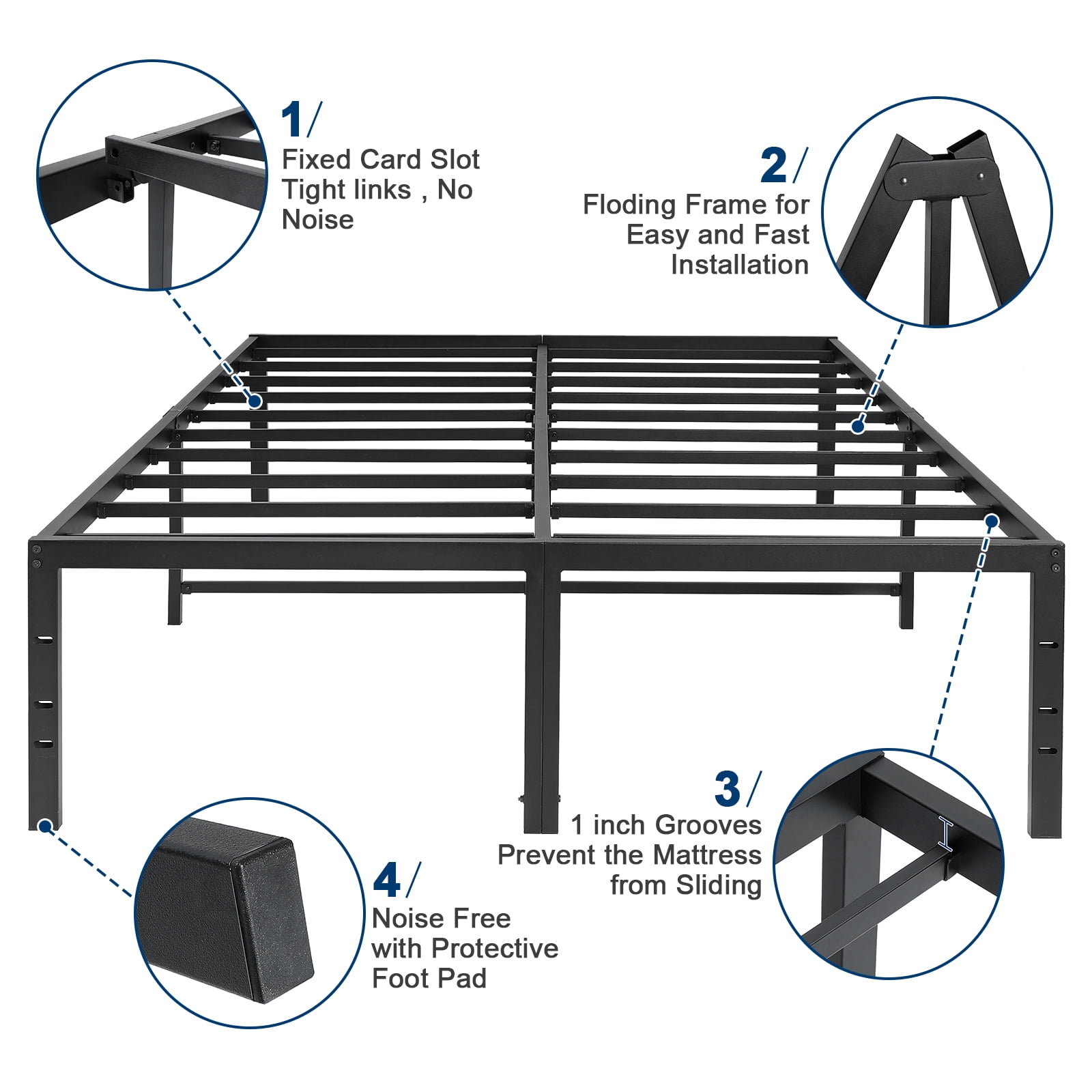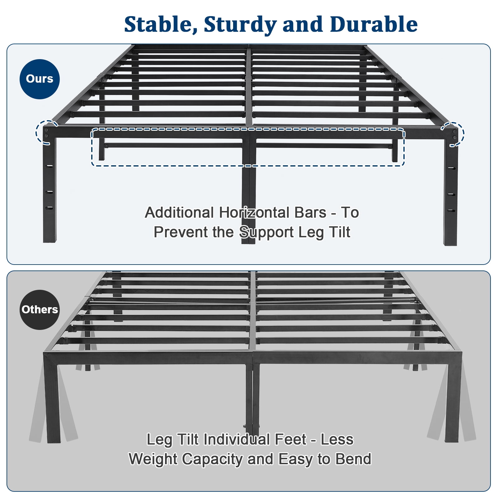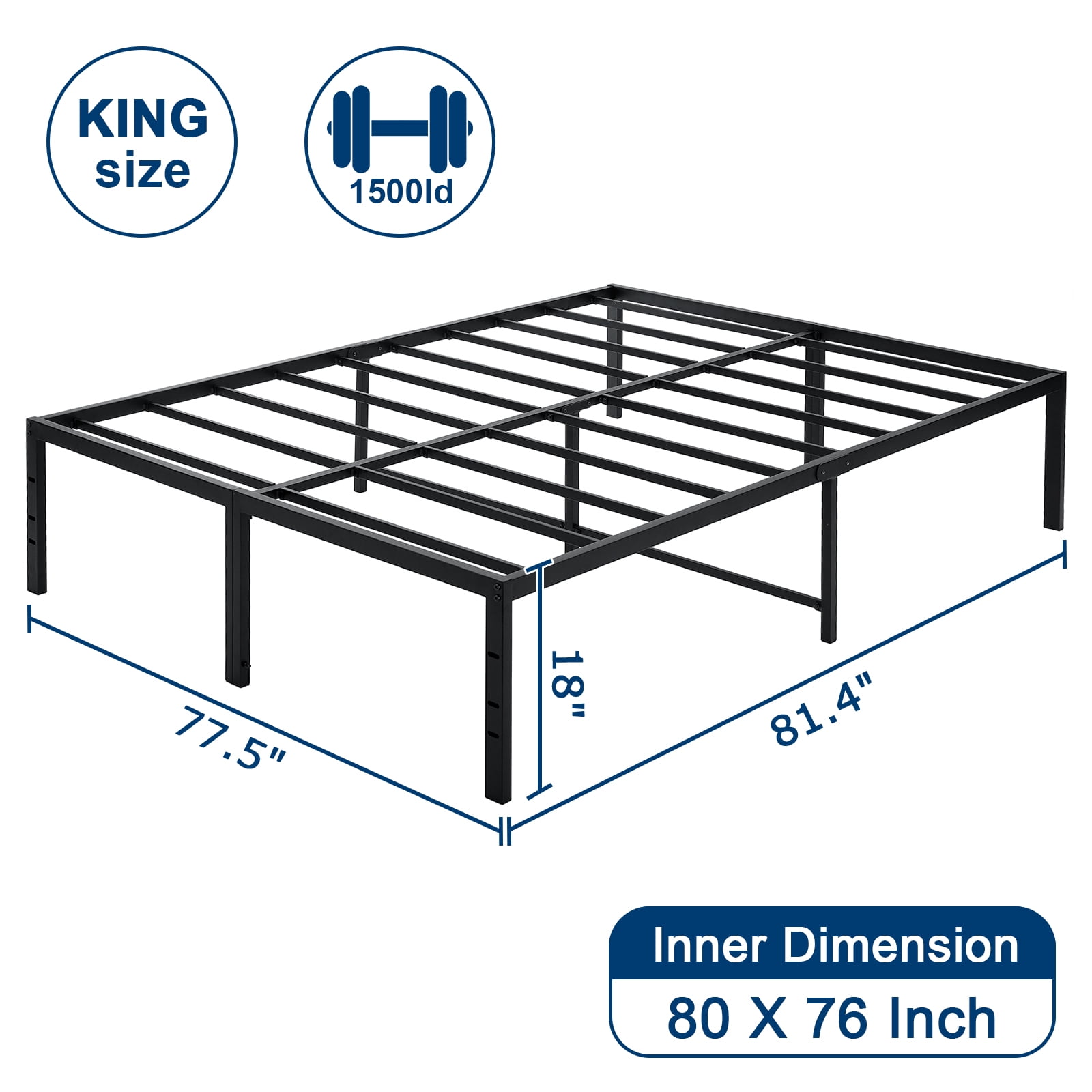 Lusimo King Size Bed Frame 18 inch Heavy Duty King Metal Bed Frame with Under-Bed Storage No Box Spring Needed Anti Slip Support Mattress Foundation, Black