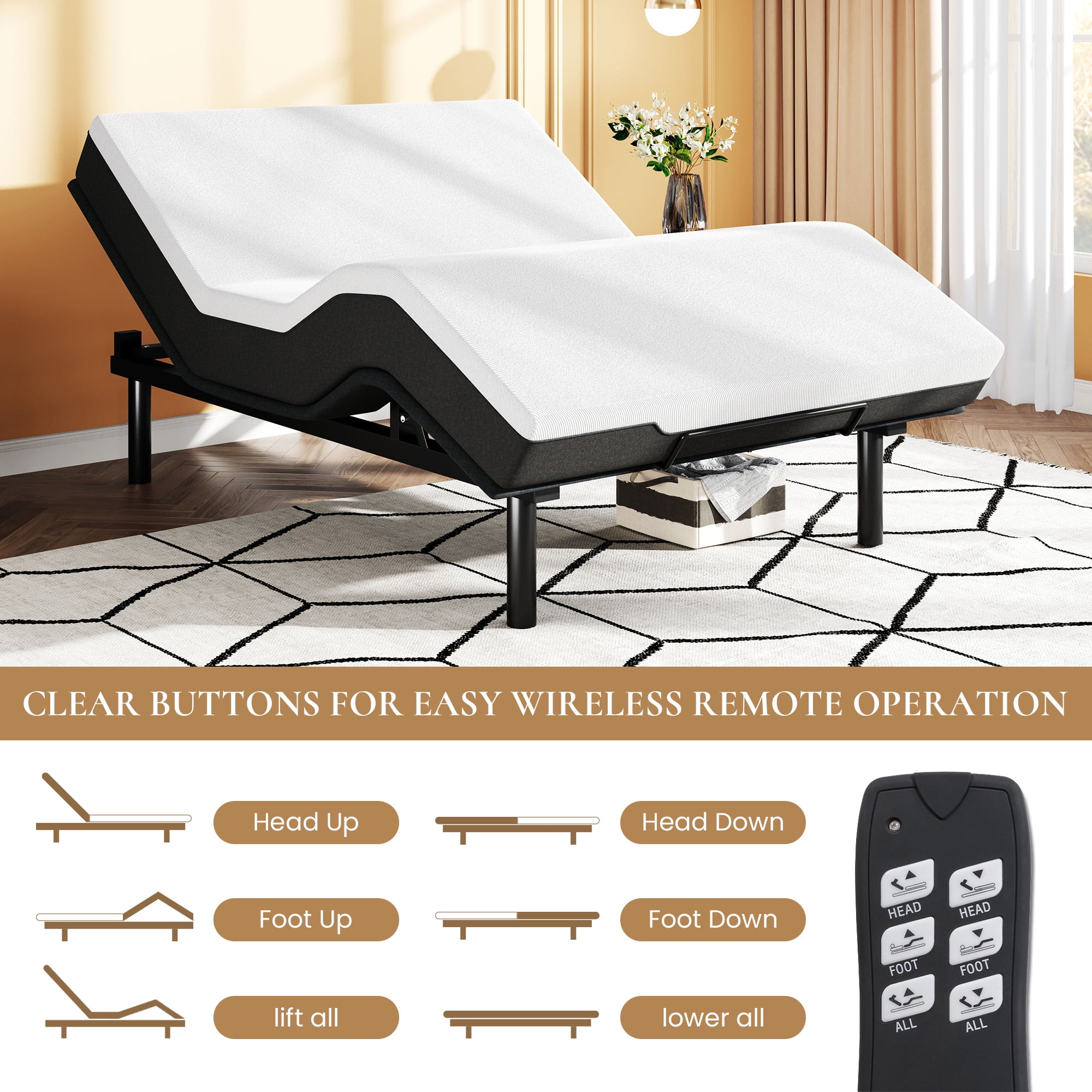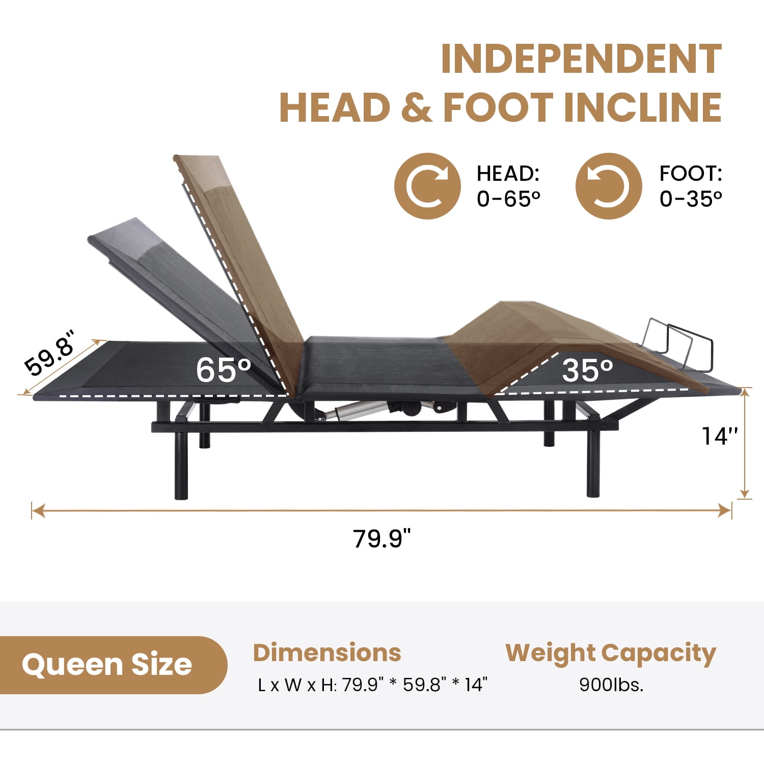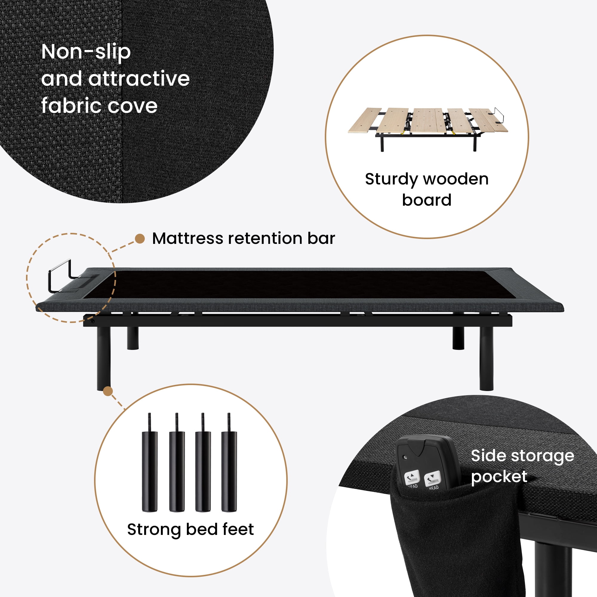 Sha Cerlin Basic Queen Size Ergonomic Electric Adjustable Bed Base Frame with Upgraded Motor 2.0, Wireless Remote Control, Independent Head & Foot Incline