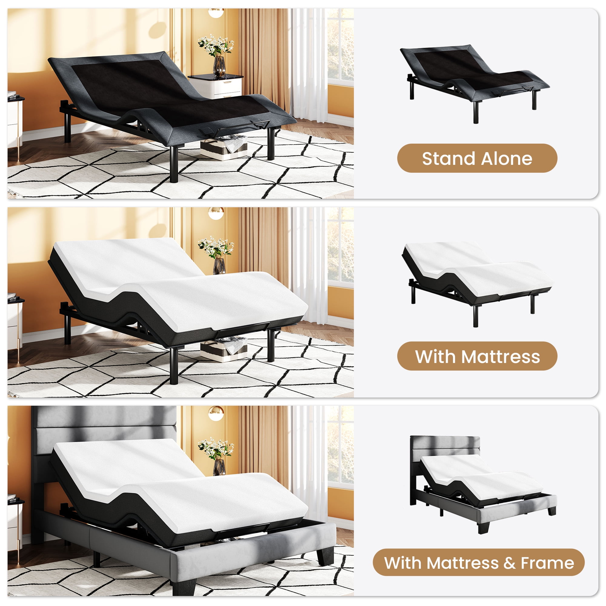 SHA CERLIN - Try our best to create the best home for you with our sincere design. Intention to connect Sha Cerlin with you by excellent service. 1. Stable Structure: Premium steel for strong support, suitable for adults. The integrated design of the poplar board and frame ensure stability. 2. Upgraded Motor 2.0: This powerful motor is made for quiet, safe operation using a low 29 volt. Running noise below 55 dB. 3. Anti-slip Design: The retainer bar can effectively keep the mattress in place, polyester cloth cover protects your mattress. Reformation of Sleep Comfort Adjust to optimal comfort position to alleviate joint pain and reduce moderate snoring while increasing blood circulation, easing stress. Sleep Soundly in the Company of Sha Cerlin Adjustable Bed Base. Please Note: The motor 2.0 version of the adjustable bed frame has been upgraded from the motor 1.0 version, which is less noisy and allows you to have a more quiet and comfortable sleeping environment. So you can choose adjustable bed frame of different sizes and functions according to your needs.