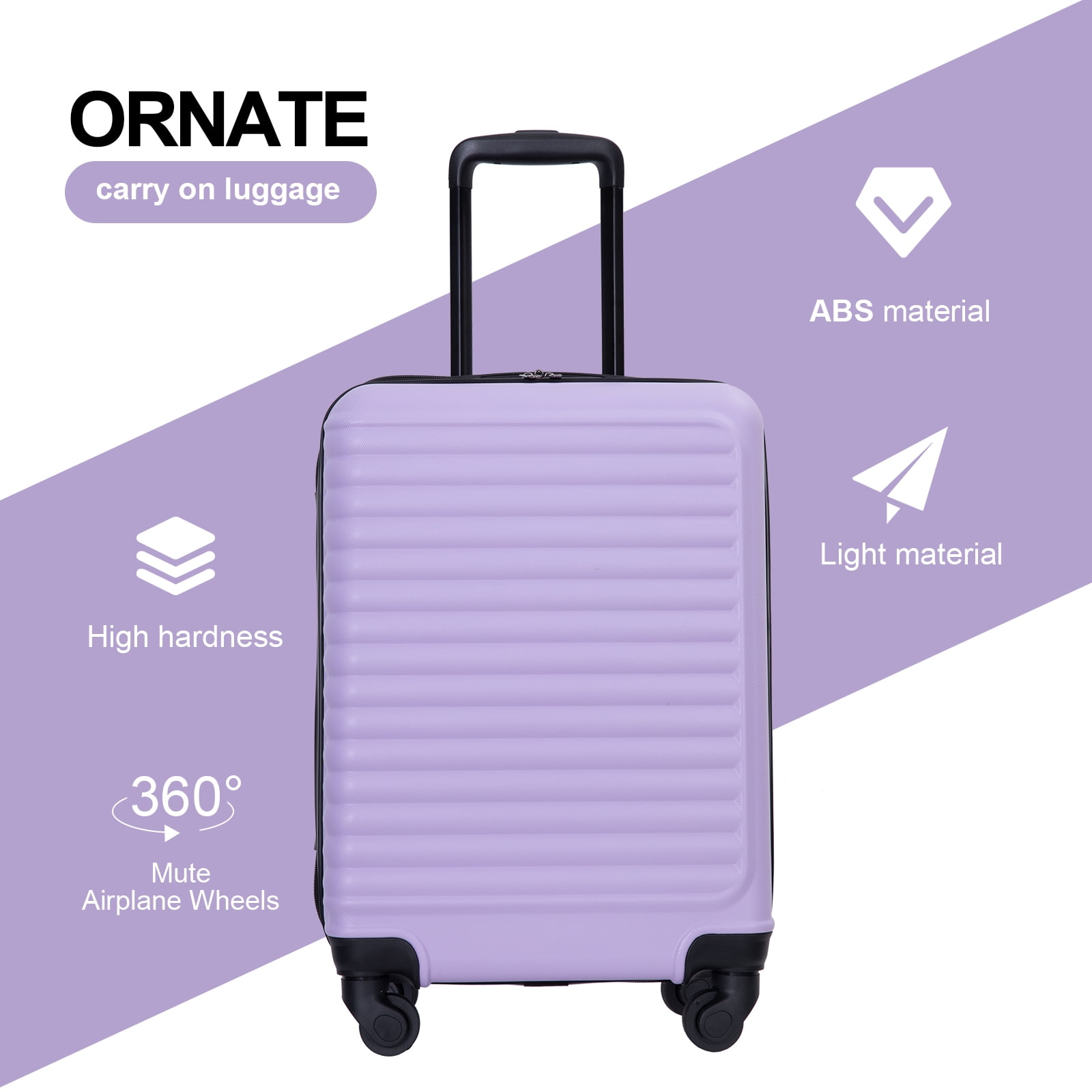 Travelhouse Hardshell Carry on Luggage 20" Lightweight Hardside Suitcase with Spinner Wheels.(Light Purple)