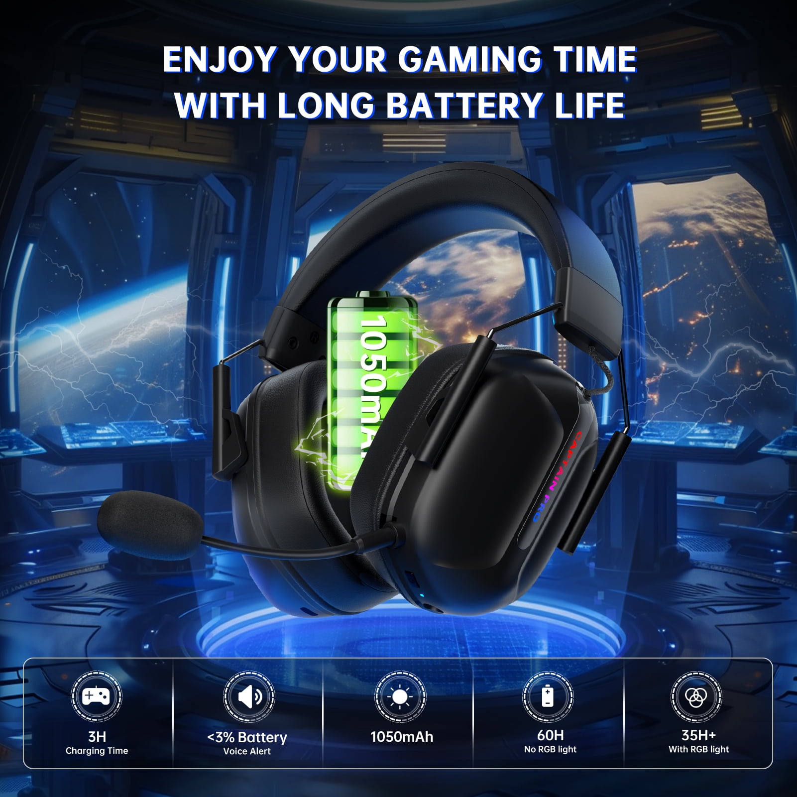 gaming headset wireless is made of high-quality and durable materials, and the side is combined with a stylish light design (can be turned off). After removing the microphone, it is not only a wireless gaming headset for PC, but also a Bluetooth gaming headset suitable for commuting, subway, travel and other multi-scenario.